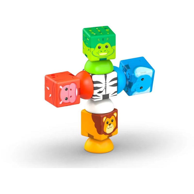 Το Magicube Safari Playset περιλαμβάνει μαγνητικούς κύβους με εκτυπώσεις ζώων όπως λιοντάρι, ζέβρα και ελέφαντας, καθώς και μαγνητικές “μισές” σφαίρες που λειτουργούν ως βάσεις. Κάθε ζώο συνδυάζεται με το αντίστοιχο χρώμα, ενθαρρύνοντας την οπτική αναγνώριση, τη φαντασία και την κατανόηση της άγριας φύσης.