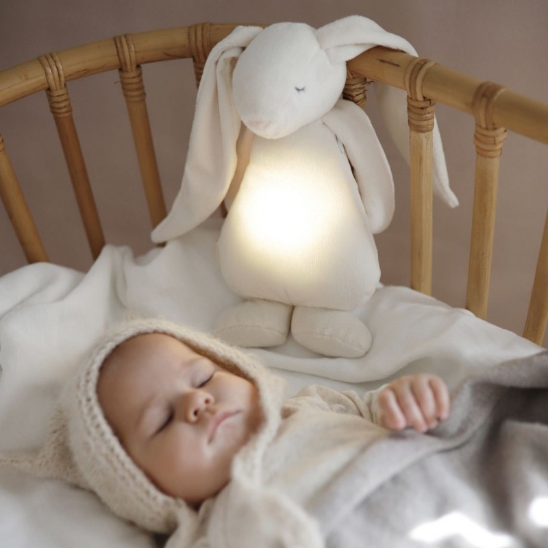 MOONIE: Επαναφορτιζόμενο βοήθημα ύπνου με αισθητήρα κλάματος από οργανικό βαμβάκι χρώμα Polar Bunny